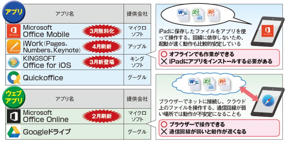 IPadには多くのOffice互換アプリがあるが、無料で使える本家の「Office for iPad」を使わない手はない。 純正なので、パソコンのExcelで作成した複雑なグラフなども、崩れることなく表示できる互換性の高さが魅力だ。.